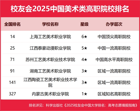 上海工藝美術(shù)職業(yè)學(xué)院勇奪2025中國美術(shù)類高職院校排名第一,江西陶瓷工藝美術(shù)職業(yè)技術(shù)學(xué)院第五