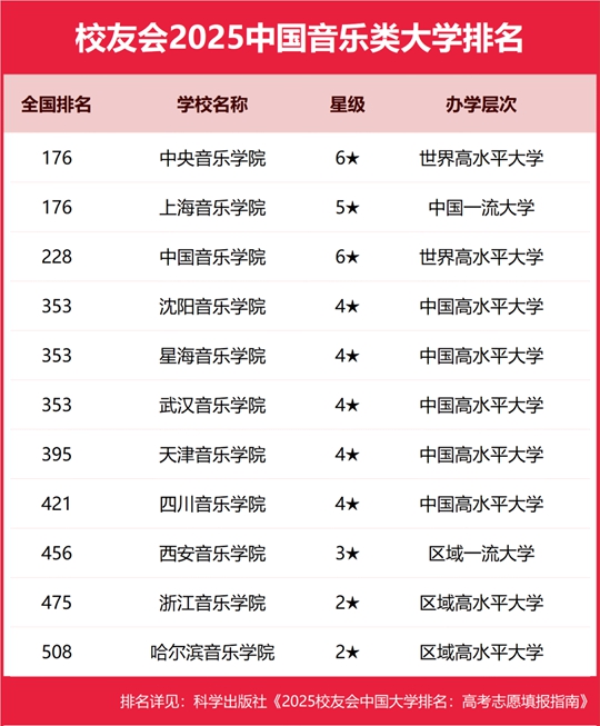 | 校友會2025中國音樂類大學(xué)排名,中央音樂學(xué)院、上海音樂學(xué)院第一 |