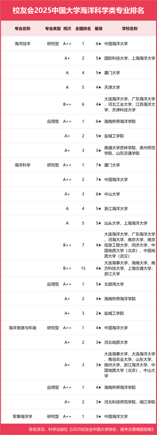 | 校友會2025中國大學海洋科學類專業排名,廈門大學、北部灣大學第一 |