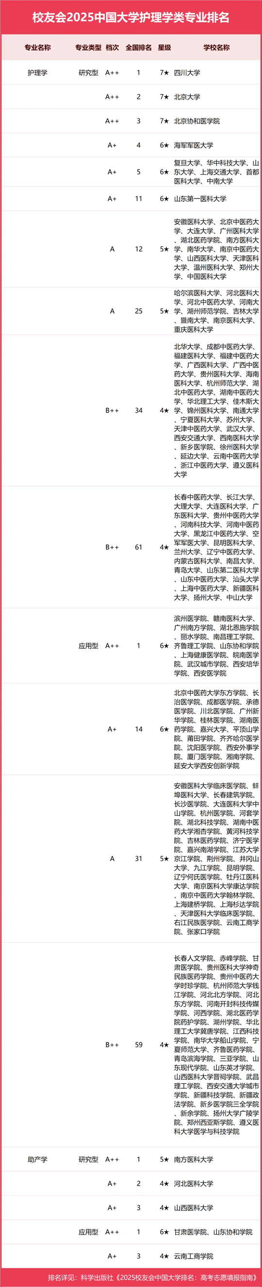 | 校友會2025中國大學護理學類專業排名,北京協和醫學院、山東協和學院第一 |