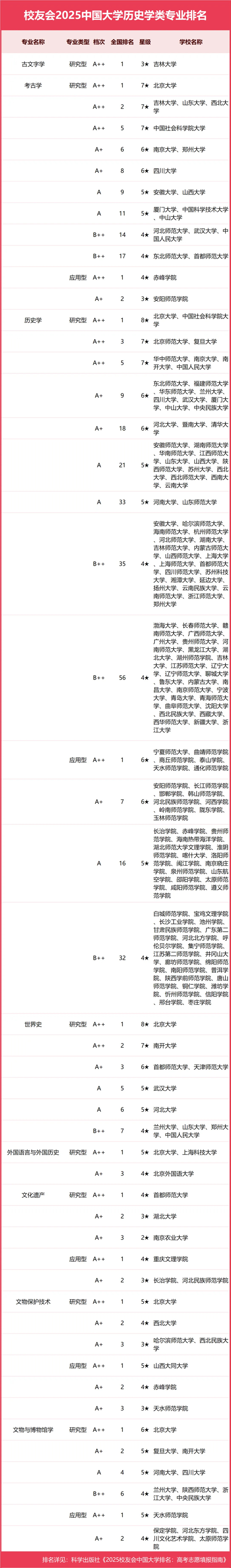 校友會2025中國大學歷史學類專業排名(研究型)