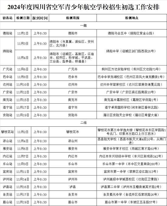 | 2024年度四川省空軍招飛、青航校招生初選檢測通知 |
