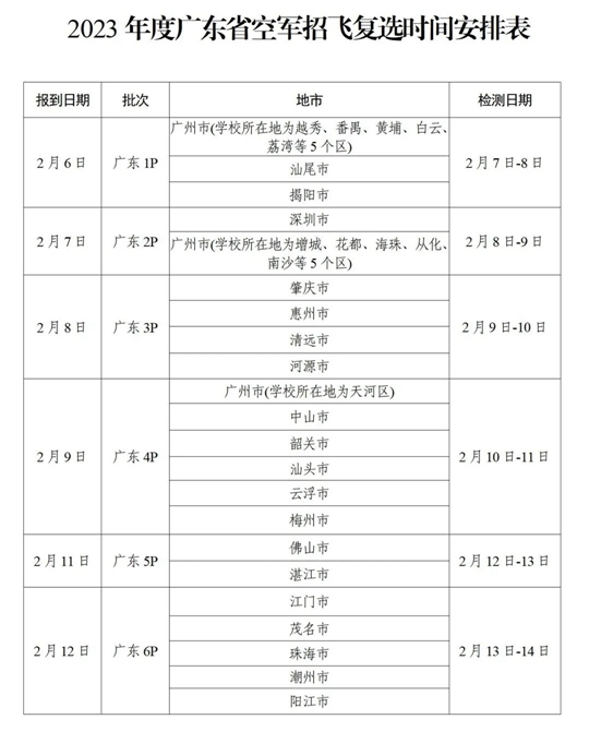 | 2023年度廣東省空軍招飛復選檢測通知 |