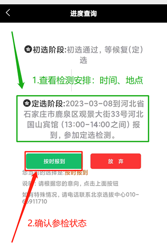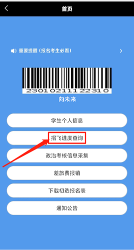 2023年3月18日至25日分8個批次進行。北京選拔中心將通過華北招飛短信平臺進行提醒,請保持預留手機開機并注意查收。接到短信后,登錄《空軍招飛綜合信息管理系統》(點擊此處登錄)按以下流程操作:
