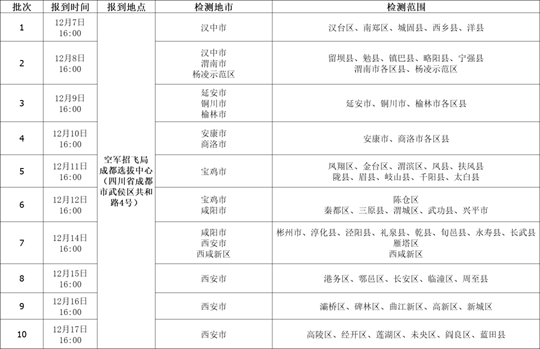 根據(jù)空軍招飛年度工作安排,2025年空軍招飛陜西省復選檢測將于2024年12月7日—12月17日在成都招飛中心進行。參檢學生請認真閱讀此文,做好檢前準備工作。