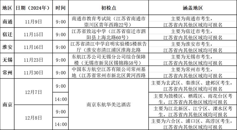 | 中國東方航空2025年度校企合作招飛預(yù)選初檢日程表(江蘇省) |