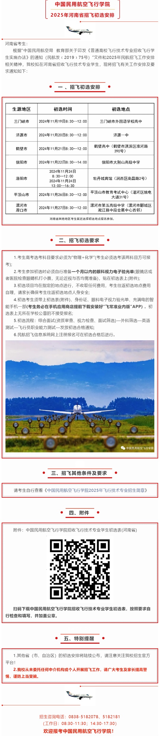 中國民用航空飛行學(xué)院2025年河南省招飛初選安排