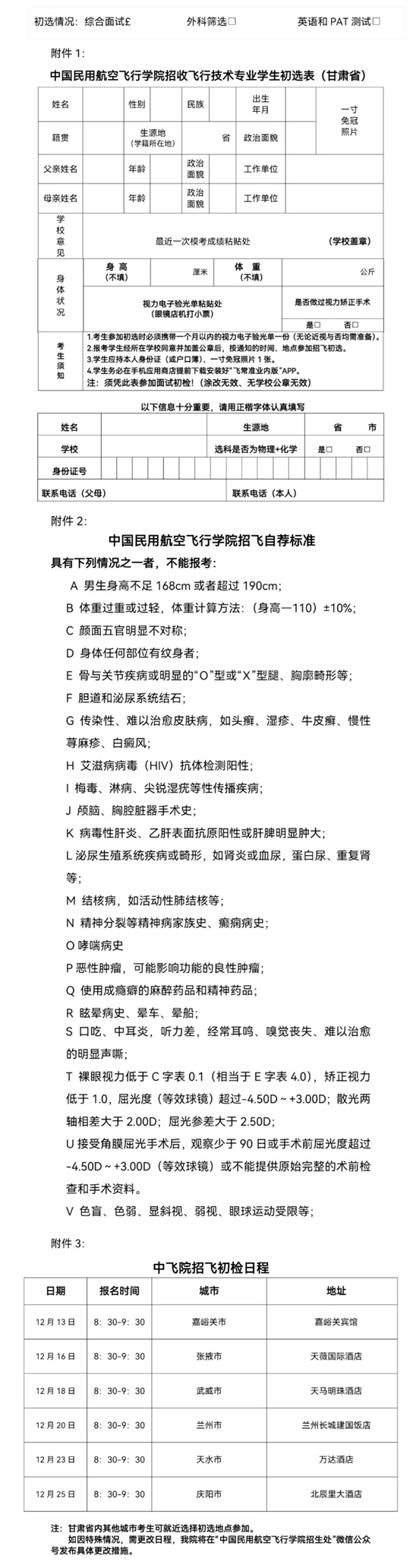 附件2:中國民用航空飛行學院招飛自薦標準