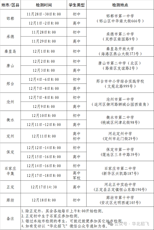 | 2026年度河北省空軍招飛、青航校招生初選檢測日程安排 |