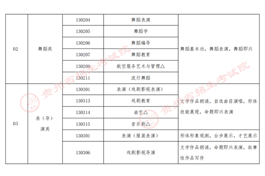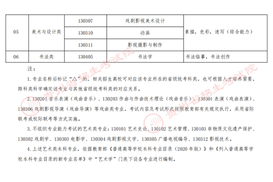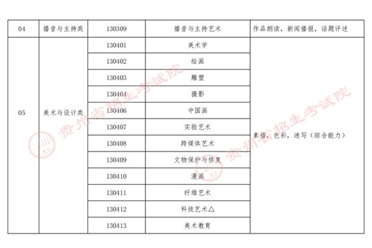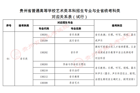 貴州省普通高等學(xué)校藝術(shù)類本科招生專業(yè)與全省統(tǒng)考科類對應(yīng)關(guān)系表(試行) 點(diǎn)擊查看