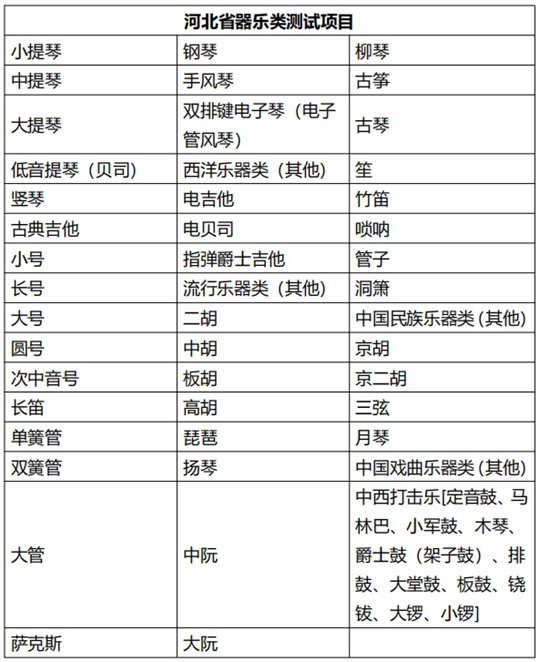 答:考生高考報名時須填報一項器種細項(具體如下),中西打擊樂專業考生還須具體填報兩種不同打擊樂器,其中至少一種為音高類打擊樂器。考生測試時應使用高考報名時所選定的樂器進行演奏。