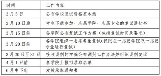 2.各學院可在不低于學校復試資格基本線的基礎上,根據本學院生源和招生計劃的實際情況,確定考生進入復試的初試成績要求。各學院相關復試錄取工作方案(含復試時間及要求)將于3月10日左右陸續在學院網站公布,我校研究生招生信息網也將同步更新。