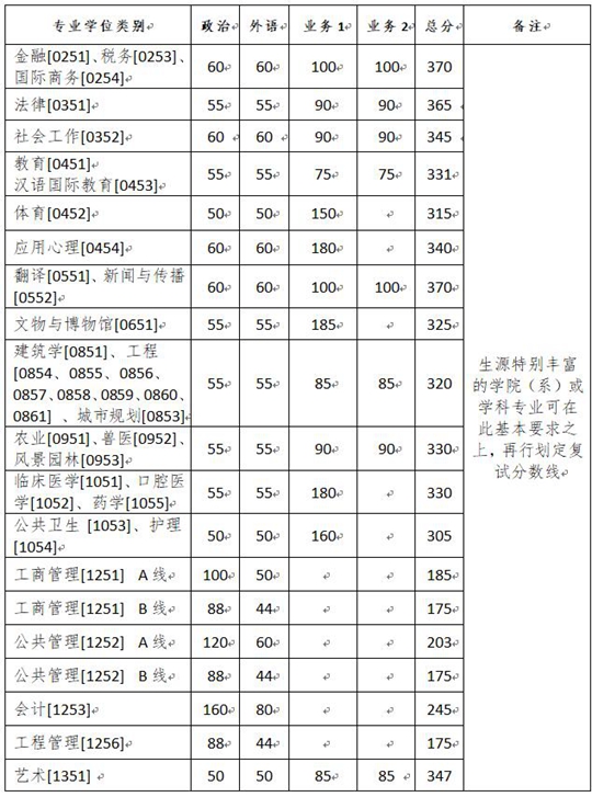 五、國家少數民族高層次骨干人才培養計劃考生初試成績同時滿足以下要求的,可參加復試: