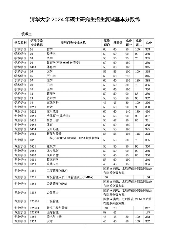 | 清華大學2024年碩士研究生招生復試基本分數線 |