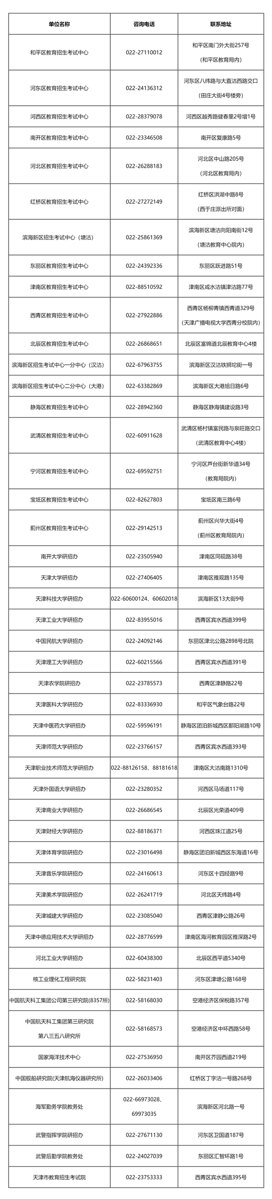 天津市2026年全國碩士研究生招生考試報考點及招生單位聯系方式