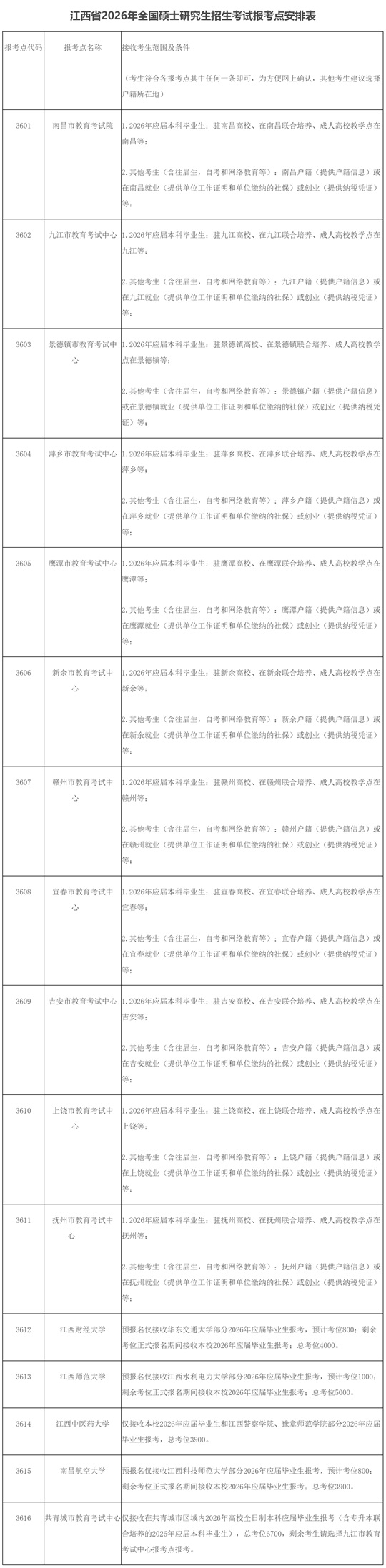 附件:江西省2026年全國(guó)碩士研究生招生考試報(bào)考點(diǎn)安排表