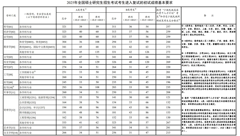 | 《2025年全國碩士研究生招生考試考生進(jìn)入復(fù)試的初試成績基本要求》(國家分?jǐn)?shù)線) |