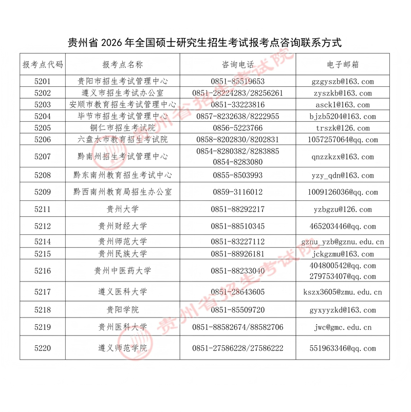 七、貴州省2026年全國碩士研究生招生考試報考點咨詢聯系方式