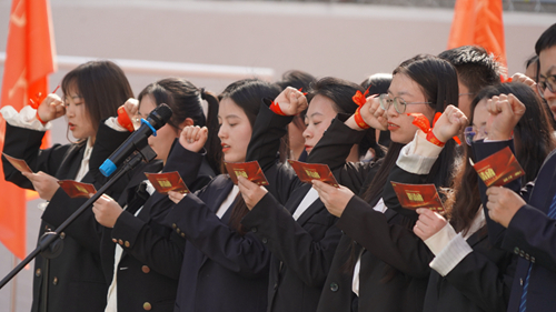 隨后,優益躍學校副校長張誠滿懷對莘莘學子的無限祝福,帶領全體奮戰在一線的教師們手舉右拳,莊嚴宣誓。