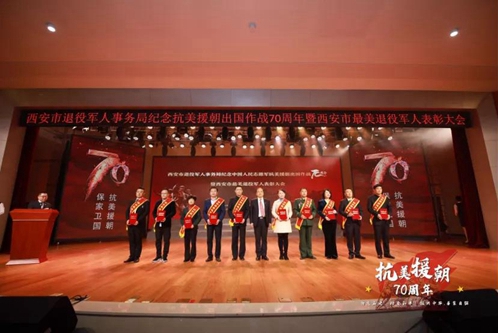 為表彰最美退役軍人,10月27日,西安市退役軍人事務(wù)局舉行了紀(jì)念抗美援朝出國(guó)作戰(zhàn)70周年暨西安市“最美退役軍人”表彰大會(huì)。