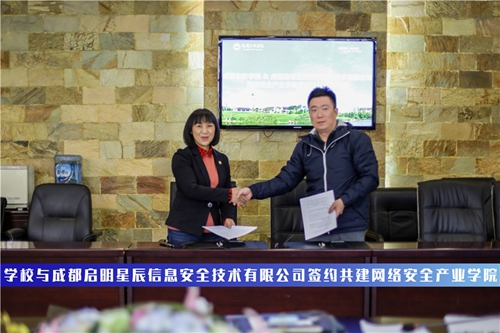 1月12日上午,成都東軟學(xué)院與成都啟明星辰信息安全技術(shù)有限公司、成都衛(wèi)士通信息產(chǎn)業(yè)股份有限公司、綿陽奇安信科技有限公司、四川安洵信息技術(shù)有限公司、神州綠盟成都科技有限公司、沈陽東軟系統(tǒng)集成工程有限公司達成共建“成都東軟學(xué)院網(wǎng)絡(luò)安全產(chǎn)業(yè)學(xué)院”協(xié)議,并于第二會議室進行了簽約儀式。出席本次儀式的嘉賓有四川安洵公司總經(jīng)理陳誠、成都啟明星辰安全公司副總經(jīng)理羅春、成都衛(wèi)士通信息產(chǎn)業(yè)公司安全服務(wù)事業(yè)部總經(jīng)理葉定松、綿陽奇安信校企合作市場總監(jiān)張波、綠盟科技總部安全服務(wù)中心高級經(jīng)理李媛媛及沈陽東軟系統(tǒng)集成工程有限公司副總經(jīng)理張泉。成都東軟學(xué)院副校長康桂花、計科系主任寧多彪和校企多方相關(guān)部門代表、學(xué)校教師代表也出席了儀式現(xiàn)場。