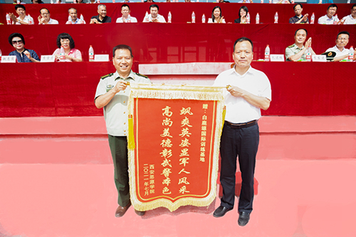 最后,由校黨委書記朱君強(qiáng)為承訓(xùn)單位贈(zèng)送了錦旗。在嘹亮激昂的軍歌聲中,本次軍訓(xùn)總結(jié)大會圓滿落下帷幕。