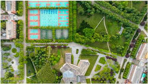 別的大學是在學校里建公園,而歐亞是在公園里建學校。即使你坐在教室里,也能聽到窗外的鳥鳴聲。校內有齊備的設施,包括一流的圖書館,大學生活動中心、多功能體育館、塑膠跑道、籃球場、健身室、星巴克、瑞幸、肯德基等便利的學習和生活實施。