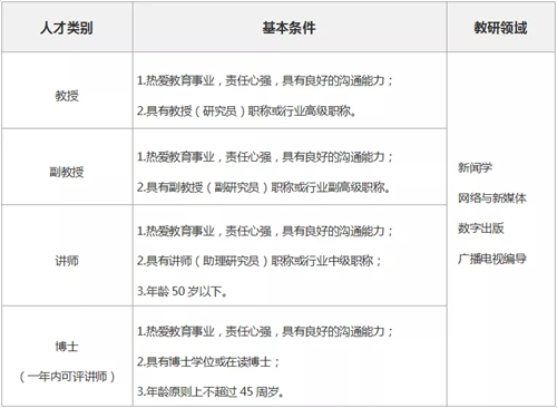 國際一流水準與影響力的專家、資深教授、行業專業、專業帶頭人、青年教師共同構成了文化傳媒學院專業素養與國際視野兼具的師資團隊,共有教職工70人。現誠摯邀請熱愛教育事業,具備從事高等學校教學和科學研究能力的人才加入文化傳媒學院大家庭,成為中國應用傳播實踐教學的引領者。