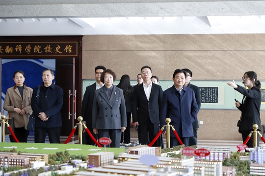 程印學(xué)一行在武忠遠(yuǎn)等人的陪同下先后參觀了西安翻譯學(xué)院沙盤、校史館等地。通過實(shí)地了解,充分認(rèn)識(shí)了西安翻譯學(xué)院的發(fā)展變化以及在育人環(huán)境、內(nèi)涵建設(shè)、教育教學(xué)、人才培養(yǎng)等方面取得的成效。