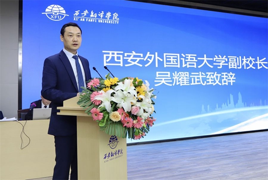 西安外國語大學副校長吳耀武,西安翻譯學院執行董事、校長、陜西教育國際交流協會副會長崔智林出席研討會并致歡迎辭。西安翻譯學院副校長郭煒、王利曉,亞歐語言文化學院、高級翻譯學院、文學與傳媒學院的師生代表及其他高校的學者、教師共計300余人參加活動。西安翻譯學院亞歐語言文化學院院長李慶明主持開幕式。