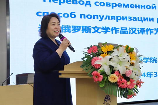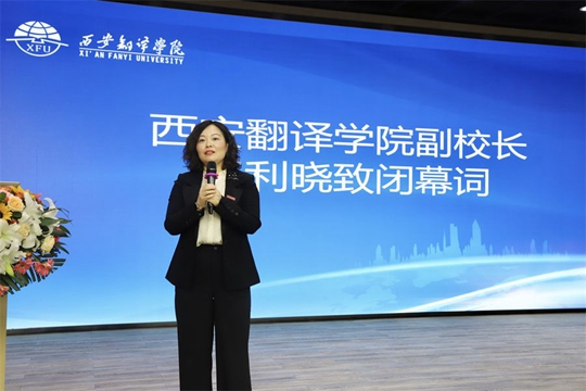 王利曉在閉幕式上致辭,對與會專家學者給予西安翻譯學院和本次研討會的大力支持表示感謝。她指出,本次研討會大咖云集,經過深入的學術研討與智慧碰撞,各位專家分享了寶貴經驗,也為我們提供了有益借鑒與啟示。此次研討會不僅是一個學術的交流平臺,更是打開了一扇通往中俄文化交流的窗口;希望與會專家學者常來西安翻譯學院交流、指導工作,在學術道路上攜手前行,共創中俄文化交流的美好未來。