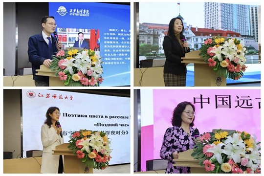 論壇現場,北京外國語大學副教授韓博文,上海外國語大學教授、博導楊波,天津師范大學教授、博導曾思藝,江蘇師范大學講師仇雪瑩,西安外國語大學教授、博導溫玉霞,中國社會科學院外文所副研究員王曉宇,西安翻譯學院文化學者、作家史飛翔,陜西師范大學教授、博導孟霞,西安翻譯學院首席教授李俊升,分別以《俄語多元翻譯能力要素構建》《上海的俄羅斯痕跡》《個性·自由·責任—也談<葉甫蓋尼·奧涅金>》《布寧短篇小說集《幽暗的林蔭道》的色彩詩歌學》《中國遠古神話俄譯研究》《俄國文化中的文學中心主義》《我與俄羅斯文學的“情緣”》《俄羅斯版<中國通史>漢譯:跨文化闡釋的再闡釋》《俄語學術著作的翻譯技巧》等主題作主旨發言,從創新視角為與會者帶來了中俄文學研究的前沿成果。