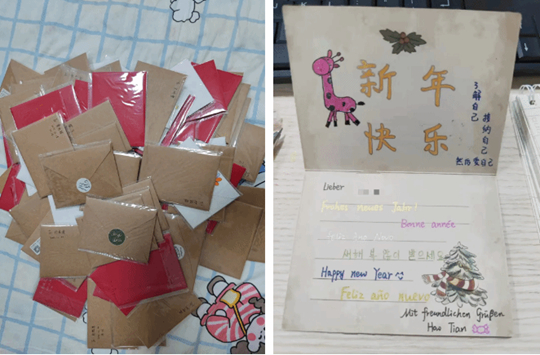 在她看來,輔導員并非完美的“教育者”,而是需要與學生共同成長的“同行者”。深夜發現學生在樓道流淚,她坐下陪伴兩小時,傾聽學生的困擾與過往心結,用自身經歷分享經驗,引導學生將消極情緒轉化為自我包容的力量;為每一位學生手寫新年賀卡,字里行間滿是真誠祝福;帶領學生開展團日活動、社區讀書會,在集體活動中提升凝聚力;走訪宿舍、召開誠信考試班會,將日常管理化作育人契機。