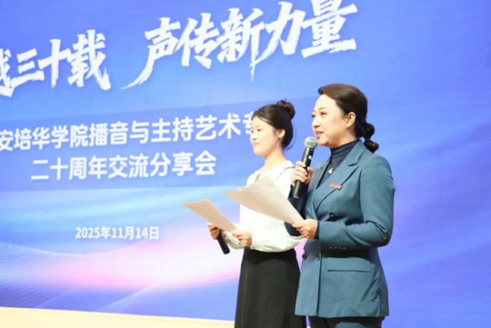 2025年11月14日,“跨越三十載·聲傳新力量”西安培華學院播音與主持藝術專業二十周年交流分享會在明德樓報告廳舉行。活動邀請與學校結緣30載的中央廣播電視總臺播音指導,原中央電視臺《新聞聯播》欄目主播、播音部主任李瑞英作為特邀主講嘉賓重返培華,為現場三百余名師生帶來一場高規格的學術與思想盛宴。