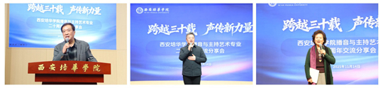 陜西廣播電視臺播音指導、陜西省第九屆\第十屆政協委員陳愛美,陜西廣播電視臺播音指導、中國播音主持“金話筒”獎獲得者包志堅,西安廣播電視臺原副臺長、二級教授、播音指導嚴一寧,西安培華學院理事長姜波,黨委副書記、副校長姚文靜,傳媒與設計學院、女子學院、黨委宣傳部相關負責人及播音與主持藝術專業歷屆校友、全體專任教師、學生代表出席活動。傳媒與設計學院教師賈登銀主持活動。
