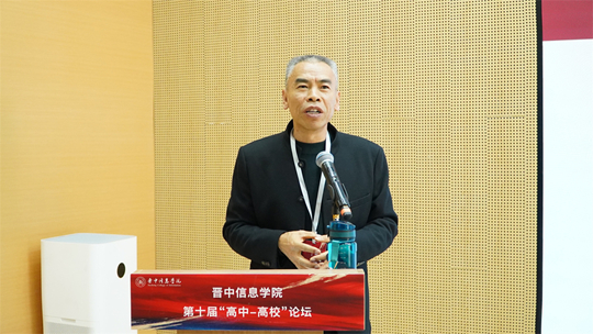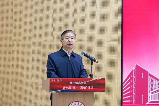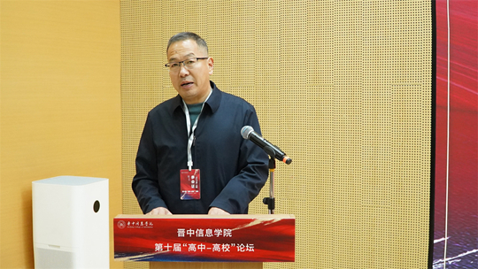 學校黨委書記張存偉首先對各位地市教育局領導及高職、高中校長的到來表示熱烈歡迎與衷心感謝。他指出,本屆論壇以“新高考,新機遇;晉學子,晉未來”為主題,旨在共同應對新高考改革帶來的機遇與挑戰,共繪育人藍圖。他重點闡述了學校以“四位一體雙院制”的人才培養模式,并強調學校緊密對接山西產業發展需求,構建了以信息科技為特色的學科專業體系,并在專業認證、一流課程建設及學生競賽、就業等方面取得了顯著成效,辦學實力與社會聲譽穩步提升。張書記表示,學校的持續發展離不開廣大高中、高校的鼎力支持,期待未來能進一步深化合作,實現協同育人,并預祝本屆論壇取得圓滿成功。