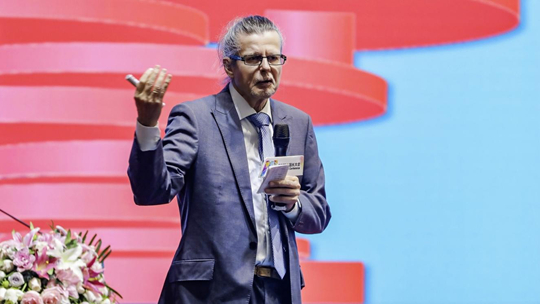 WPC世界園長大會主席賀光輝以《再次燃起幼教夢想》為主題總結發言,為為期一天半的專題報告畫上句號,指出當前幼教行業需以“合作、合伙、合并”三合策略推動轉型升級,通過共享、規模效應來構建生態共贏格局。他同時提到,AI園長大會將延續WPC世界園長大會的全球資源優勢,匯聚國內外幼教專家與優質企業,助力從業者把握AI時代學前教育發展新趨勢。
