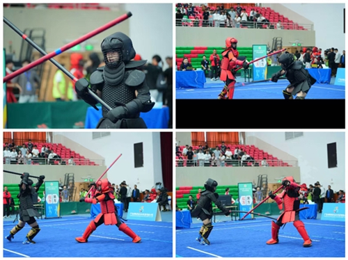 11月23日,由廣東省教育廳、廣東省學生體育藝術聯合會主辦,廣東科技學院承辦的2025年廣東省大學生武術長短兵錦標賽在廣東科技學院東莞南城校區體育館舉行。廣州城市理工學院長短兵隊教練員馬伯韜副教授和林俊良老師帶領魏芷涵、敖卓揚等13名長短兵隊成員參加了甲組包括男子、女子長短兵項目的比賽。經過多輪激烈的體能與技術之間的比拼,廣州城市理工學院長短兵隊最終攬獲1個冠軍,2個季軍和5個第五名的優異成績。