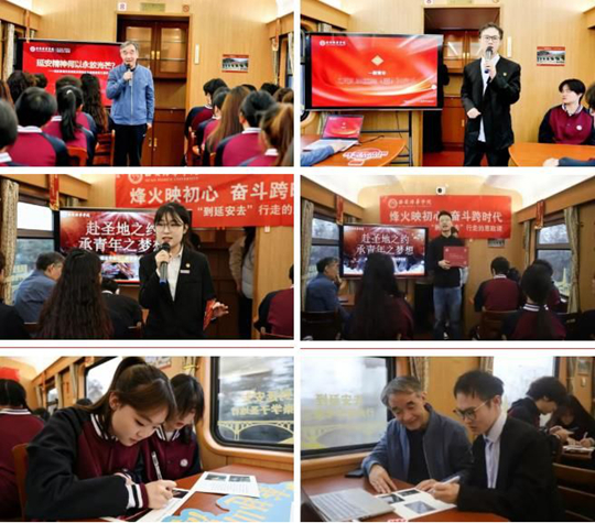 車輪滾滾,思政之燈暖意長明。西安培華學院“紅旗頌”創新理論宣講中心的老教授、青年教師、學生宣講員等,依托“理論精講+影像溯源+聲動共鳴”模式,在列車上開設思政課堂,馬克思主義學院銀齡教授李建森、青年思政名師張夢珅聚焦延安精神,解讀其核心內涵與時代價值;“烽火映初心 奮斗跨時代”主題微課堂上,圖文影集串聯革命史實與精神脈絡,以青春筆觸重溫培華自1928年創校以來的奮斗歷程,講述培華與民族同命運、與時代同步伐的故事,讓師生于紅色傳承中感悟革命先輩的奮斗精神,厚植家國情懷,做堅定信仰的踐行者。