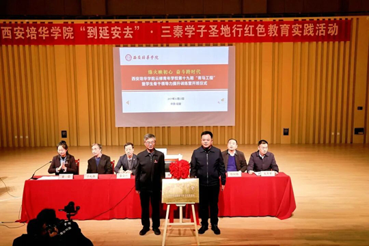 384名師生齊聚延安大劇院,舉行西安培華學院云梯青年學校第十九期“青馬工程”學生骨干領導力提升訓練營暨西安培華學院“到延安去•三秦學子圣地行”紅色教育實踐研學活動開班儀式。
