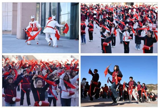 場景互動體驗課中激情教學陜北腰鼓,紅色的腰鼓系在腰間,鮮艷的綢帶隨風飄揚。學員們認真學習基本動作和技巧,敲打出激昂有力的鼓點。歡快的鼓聲中洋溢出燦爛的笑容,紅色文化在互動傳習中代代相傳。