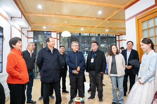 走進中韓學(xué)院,孫堯關(guān)切詢問學(xué)生發(fā)展近況,并著重剖析了國際化辦學(xué)中的育人關(guān)鍵。他強調(diào),要注重培養(yǎng)學(xué)生的“歷史思維”,幫助他們建立正確的心理認知和堅固的心理防線。對于學(xué)校在每個建筑設(shè)置韓語標(biāo)識的做法,他連連稱許,認為這為國際化辦學(xué)創(chuàng)造了良好的語言和環(huán)境浸潤。