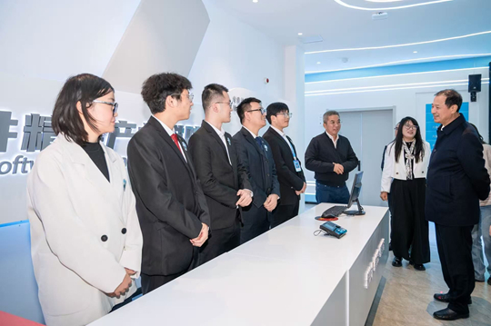 在雙體軟件精英產(chǎn)業(yè)學(xué)院,孫堯?qū)Α凹夹g(shù)實戰(zhàn)+職場關(guān)鍵能力”的雙體系培養(yǎng)模式表示了充分肯定。在聽完詳細介紹后,他即興用“大學(xué)生是一張可畫精彩圖畫的白紙”這一生動比喻,精準(zhǔn)地道出了學(xué)生們巨大的發(fā)展?jié)撃芘c泰山科技學(xué)院在個性化培養(yǎng)上的努力,并鼓勵學(xué)生們要緊盯技術(shù)前沿,努力提升實踐能力。
