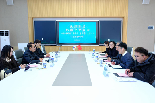 為深化中韓教育交流,共育具有國際視野的高素質人才,2025年11月27日,韓國亞洲大學國際協力副校長李碩遠、國際處入學部部長金昌顯、國際處入學部主任李宣慧一行到訪泰山科技學院。泰山科技學院副校長智英斌及相關部門負責人熱情接待了來訪嘉賓,雙方圍繞意向合作項目展開深度洽談,達成多項共識。