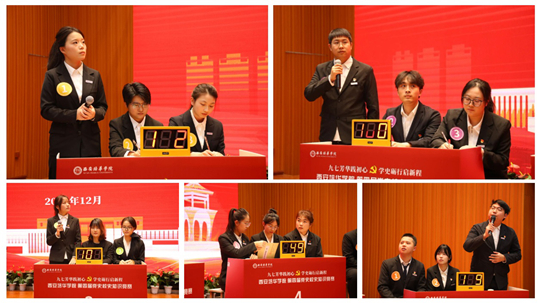 決賽現場,五支代表隊展開了激烈角逐。決賽設“過關斬將”“眼疾手快”“爭分奪秒”“齊心協力”“破釜沉舟”“風采展示”等六個環節,包括必答、搶答、快速判斷、接力、風險挑戰、校史解讀等題型,內容涵蓋中國共產黨百年奮斗歷程中的重要事件、理論成果、偉大精神以及培華自1928年建校以來的重大發展節點、辦學理念、杰出人物等。選手們沉著應答、默契配合,展現出扎實的知識儲備和良好的精神風貌。尤其在搶答環節,各隊比分你追我趕,現場氣氛緊張熱烈,掌聲不斷。