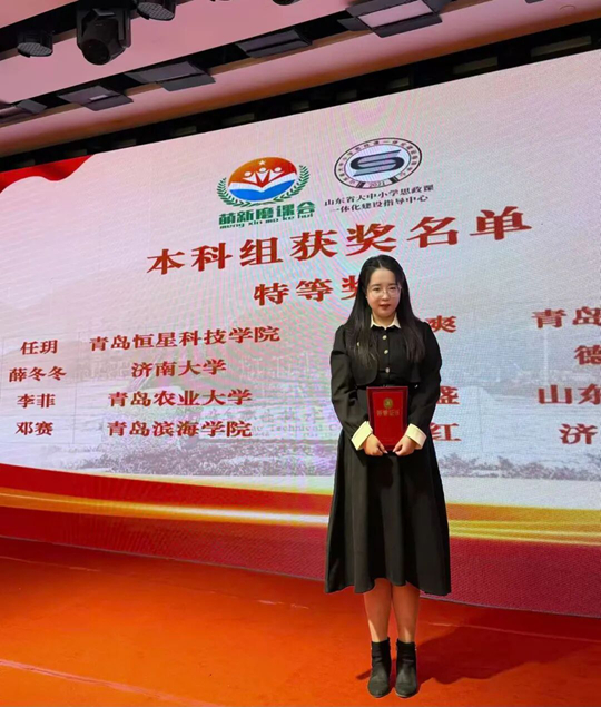 2025年12月5日,山東省高校思想政治理論課教學指導委員會主辦的2025年度“萌新磨課總會”在青島圓滿落幕。在此次規模盛大、競爭激烈的省級教學競賽中,青島恒星科技學院任玥老師憑借扎實的理論功底、精湛的教學技藝、獨特的教學設計與出色的現場表現,一路披荊斬棘,在150余所高校中脫穎而出,最終以全省參賽教師最高分的優異成績,榮獲省級特等獎第一名,展現了青島恒星科技學院馬院思政課教師卓越的教學風采與深厚的育人素養。