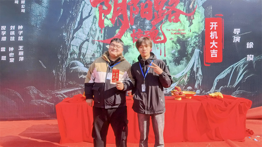 近日,晉中信息學院電影商務產業學院與萬畫影業聯合開展的“帶你拍電影”產教融合實踐項目正式啟動。經報名與選拔,電影商務產業學院第四期實訓班學員李樹杰、韓爍兩位同學脫穎而出,前往浙江省東陽市的橫店影視城,參與院線驚悚懸疑電影《陰陽路驚魂》的攝制工作。本片由青年導演徐俊執導,何雨宸主演,定檔2026年8月19日全國上映。本次實踐不僅是一次專業教學與產業實景的深度融合,也成為學生走出課堂、觸摸真實影視工業的重要契機。