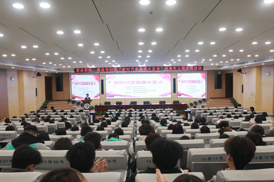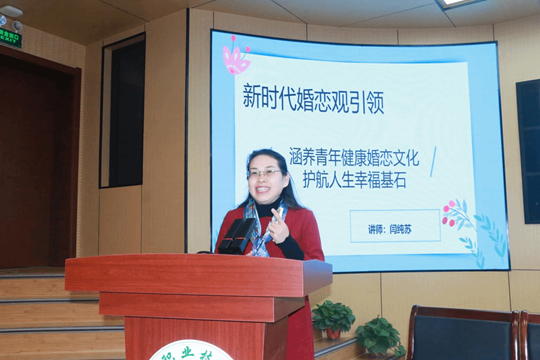 為引導(dǎo)廣大青年學(xué)生形成積極健康的婚戀觀與家庭觀,12月4日下午,由陜西省婦女聯(lián)合會(huì)指導(dǎo),陜西省婚姻家庭服務(wù)與研究基地、商洛市婦女聯(lián)合會(huì)聯(lián)合主辦,商洛職業(yè)技術(shù)學(xué)院承辦的“新時(shí)代家庭觀大宣講”進(jìn)高校主題實(shí)踐活動(dòng)在商洛職業(yè)技術(shù)學(xué)院圖書館報(bào)告廳舉行。活動(dòng)以“樹立正確婚戀觀,走好幸福人生路”為主題。商洛市婦聯(lián)主席胡燕梅,商洛職業(yè)技術(shù)學(xué)院黨委副書記、工會(huì)主席吳雪,副院長(zhǎng)李承濤,陜西省婚姻家庭服務(wù)與研究基地負(fù)責(zé)人,西安培華學(xué)院女子學(xué)院副院長(zhǎng)李蒙,骨干教師秦園,基地專家團(tuán)成員及師生代表共200余人參加了活動(dòng)。