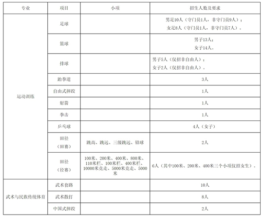 運動訓練專業(yè)本科招生70名,武術與民族傳統(tǒng)體育專業(yè)本科招生20名。