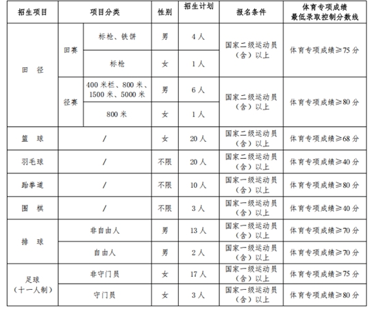 (二)對具備一級運動員技術等級證書的考生,可在我校文化考試成績最低錄取控制線下降低 30 分錄取;對具備運動健將技術等級證書的考生,可在我校文化考試成績最低錄取控制線下降低 50 分錄取。